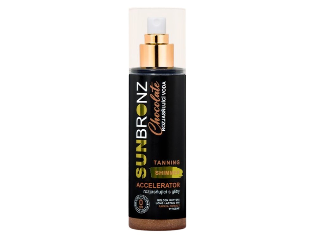 Chcete rychlé a dlouhotrvající opálení? V tom vám pomůže rozjasňující voda SUN BRONZ! Tato novinka vám nejen pomůže dosáhnout rychlejšího zhnědnutí pokožky, ale také prodlouží dojem opálení a zintenzivní bronzový odstín. Navíc hloubkově hydratuje a vyhlazuje vaši pokožku, kterou zanechává svěží a rozjasněnou. K tomu má neodolatelnou vůni čokolády, která jemně provoní vaši pokožku!